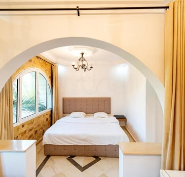 Découvrez notre CHAMBRE DOUBLE, avec UN GRAND LIT luxueuses et des équipements modernes. Profitez d'une expérience exceptionnelle en famille ou entre amis.