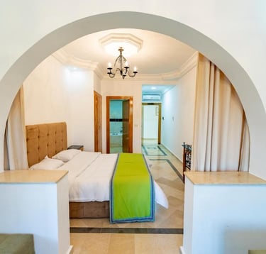 Notre chambre quadruple allie élégance et confort pour une expérience de séjour inoubliable. Son design intérieur somptueux reflète une atmosphère à la fois accueillante et moderne, offrant un espace généreux pour votre bien-être. La chambre est équipée de deux grand lits confortables ainsi que de toutes les commodités nécessaires pour répondre à vos besoins. Que vous voyagiez en famille ou entre amis, cette chambre sera un choix idéal pour profiter d'un séjour exceptionnel dans notre hôtel.